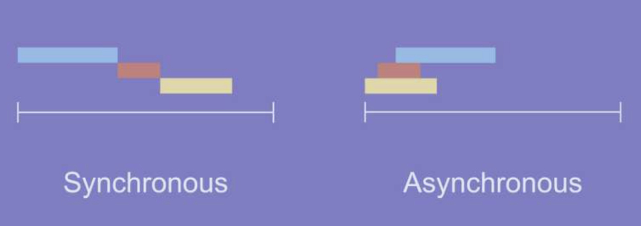 요청과 그 결과가 동시에 일어난다. 요청을 보낸 후 응답(=결과)를 받아야지만 다음 동작이 이루어지는 방식이다.