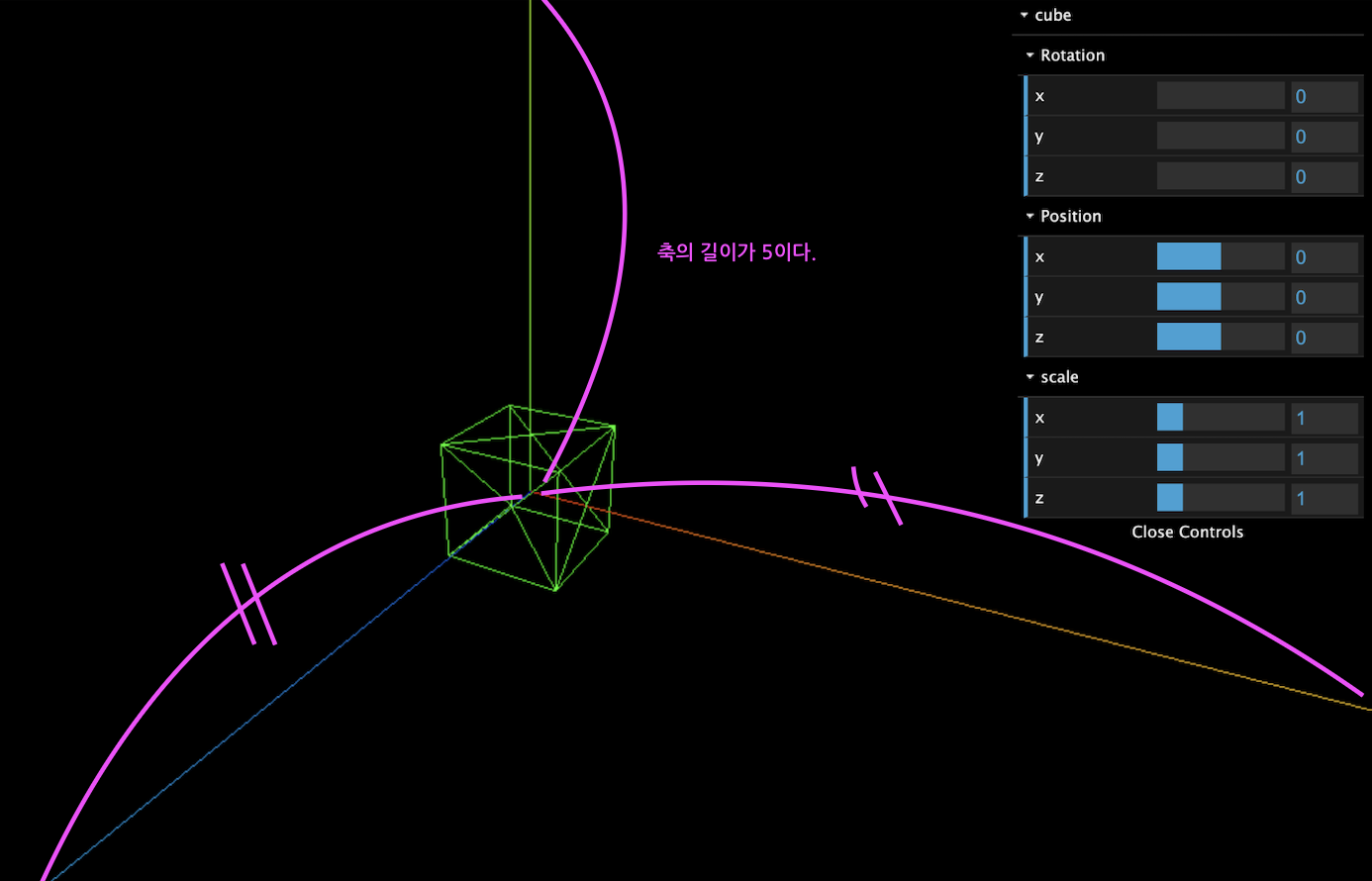 console.log(mesh.position.length()) // 0,0,0 부터 mesh 까지의 거리